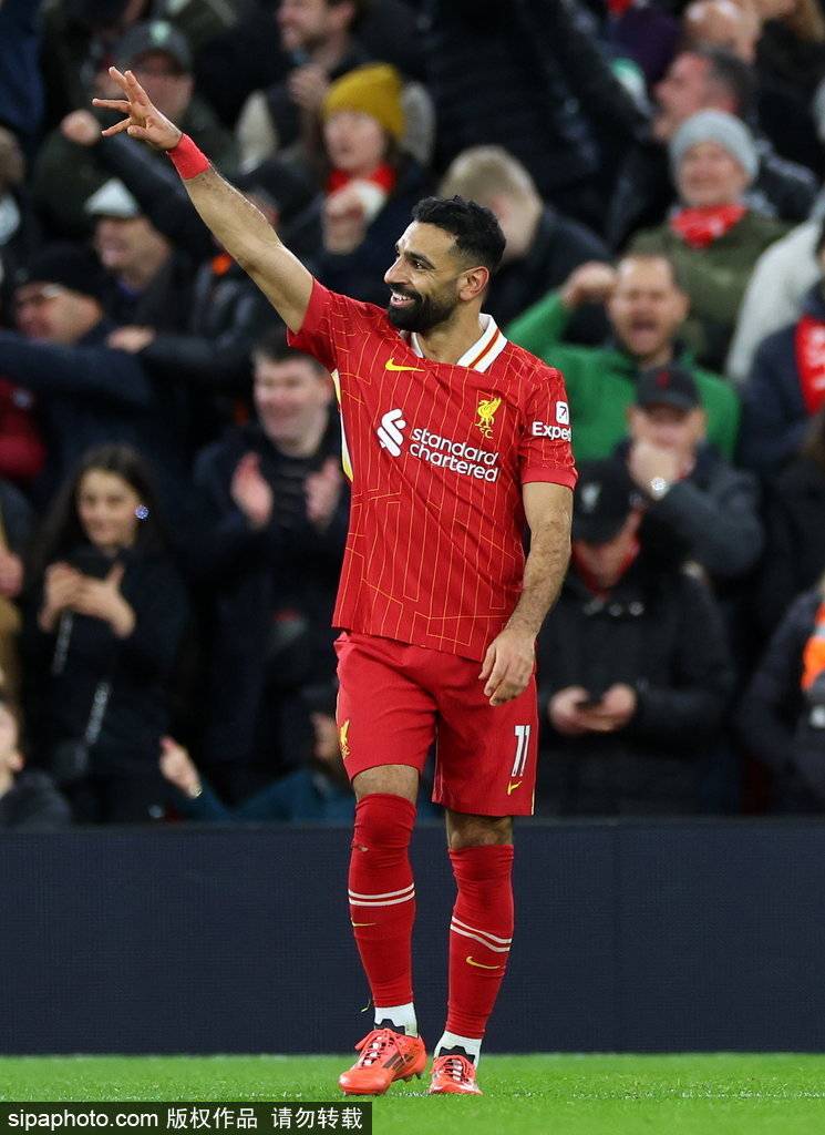 第12分钟,利物浦取得领先,阿诺德后场长传,萨拉赫获得球权后禁区右侧传中,加克波后点面对空门将皮球送入网窝,1-0!加克波收获本赛季英超第2球,他连续2场比赛取得进球后,各项赛事进球数达到8个。这也是萨拉赫英超生涯第76次助攻,追平谢林汉姆和埃里克森,排在英超历史助攻榜第11名。
