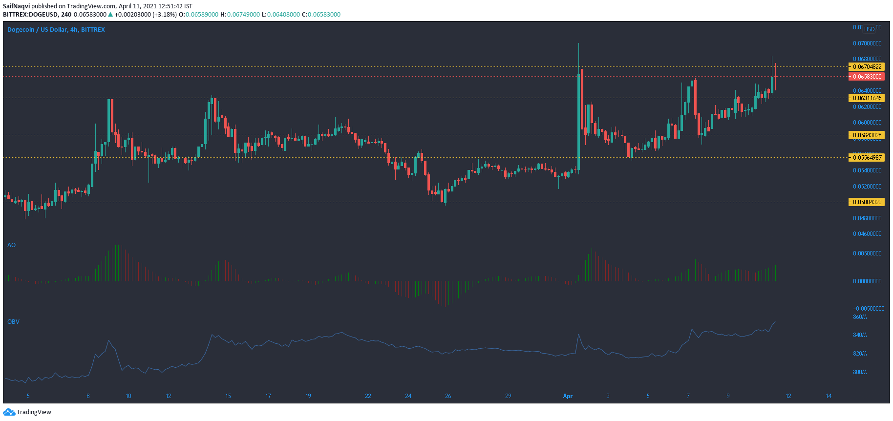 上面这张图,就是名为DOGE狗狗币,在最近一段时间的走势图 在2021年1月3日,它的价格还是0008美元一个 结果到了5月3日,它已经到了074美元一个了 如果年初投资1000块,按照159倍来算,现在已经价值16万了 而且和早期比特币不同,那会儿根本没多少人知道虚拟货币,但狗狗币根本就是在众目睽睽之下涨到。