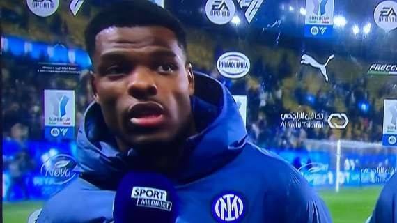 直播吧1月3日讯 意超杯半决赛,邓弗里斯倒钩+世界波,国米2-0击败亚特兰大。赛后,邓弗里斯接受Sportmediaset采访。