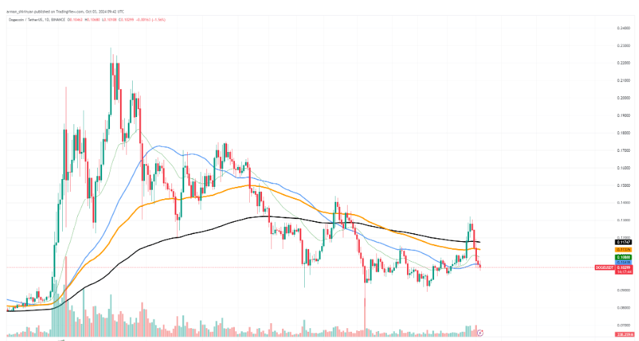 0.10 美元的心理和技术支撑位是需要关注的第一个关键水平。这一价格障碍至关重要,过去在经济低迷时期传统上是支撑位。如果狗狗币能守住这一支撑位,它可能会经历短暂的盘整,甚至逆转。然而,跌破 0 美元可能会导致更多的抛售压力和进一步下跌。